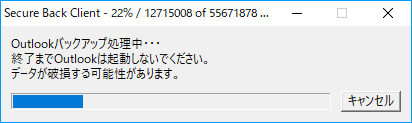 Secure Back ClientがOutlookのメール保存場所をスキャンし、テンポラリフォルダへ自動でコピーが開始されます。